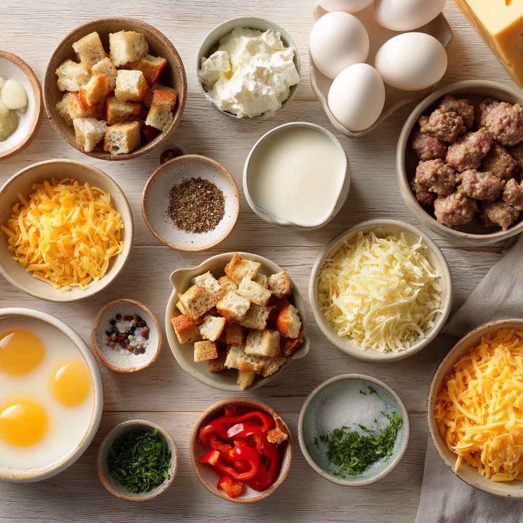 Bacon & Gruyère Version: Replace the Italian sausage with 8–10 strips of thick-cut bacon, cooked until crispy and crumbled. The smokiness of bacon plays beautifully against the nutty Gruyère and buttery croissants — it’s a more elegant, crowd-pleasing combination for upscale brunches.