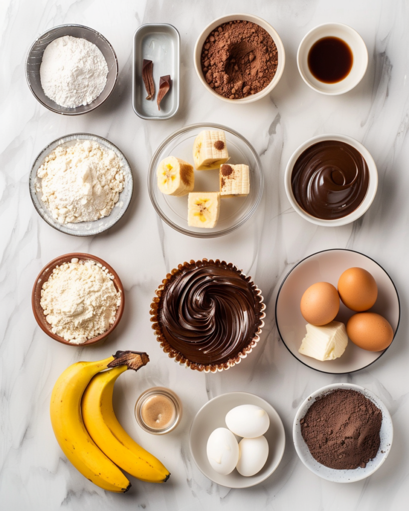 The ingredient list is intentionally short, focusing on quality basics that let the banana and Nutella shine. Measurements below yield 12 standard‑size muffins (using a 12‑cup muffin tin). Feel free to halve or double the recipe as needed.